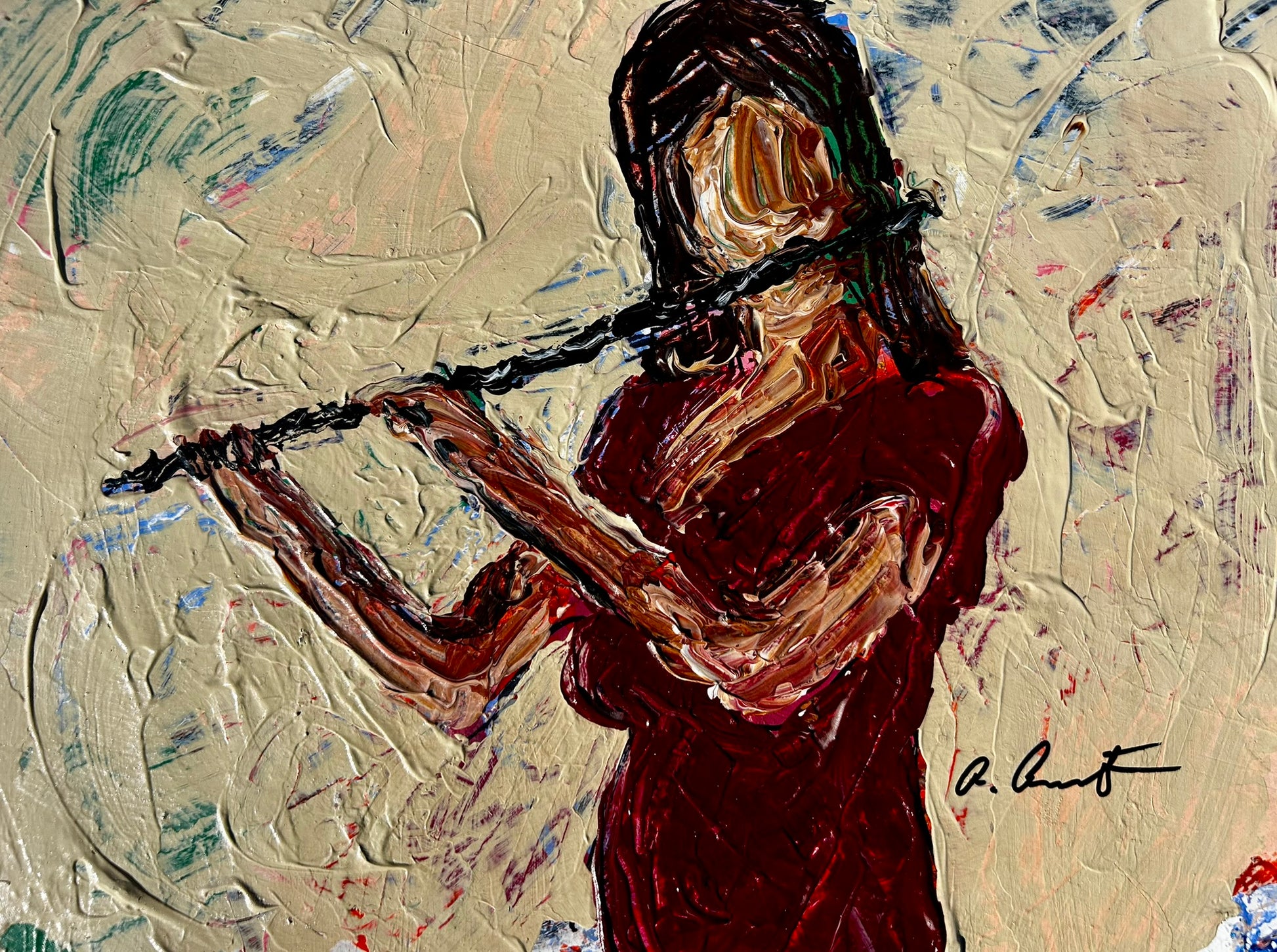Painted on 9x12 inch archival paper, this work features and was created using a palette knife.